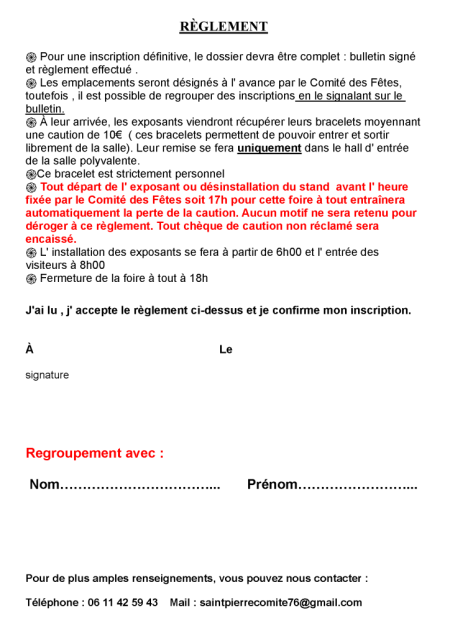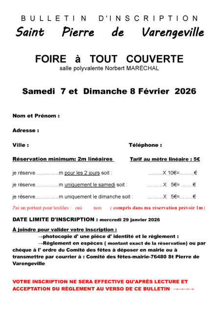 - En savoir plus sur Inscription Foire à tout comité des fêtes